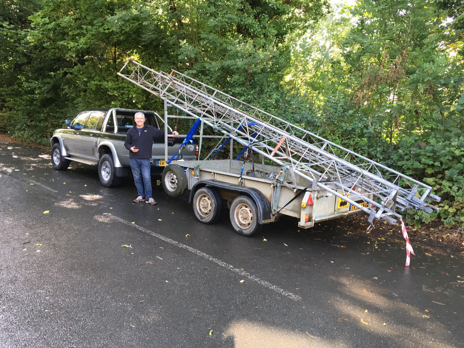 My thanks to Rich (MW0LGE) and friends who had already got the tower sections onto the road by the time we had arrived. The photo below shows the loaded tower just before leaving for home.